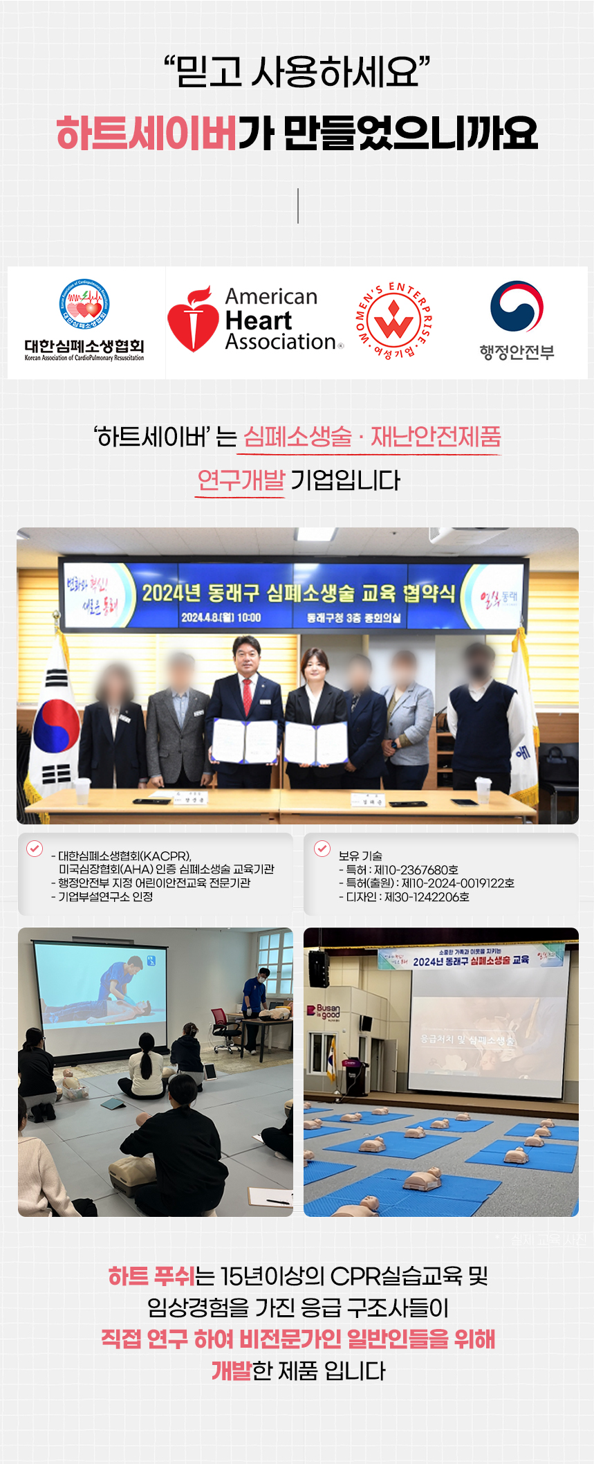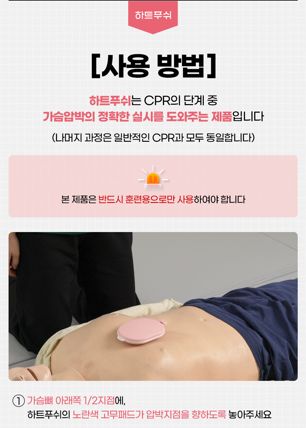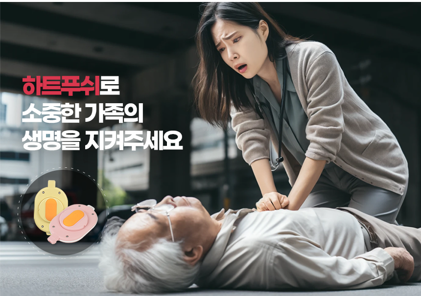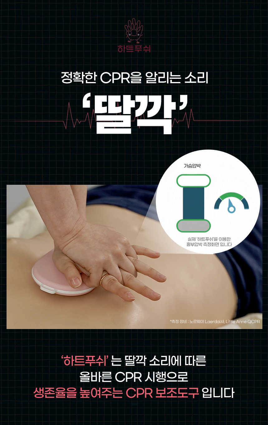 '하트 푸쉬'는 딸깍 소리에 따른 올바른 CPR 시행으로 생존율을 높여주는 CPR 보조도구 입니다.