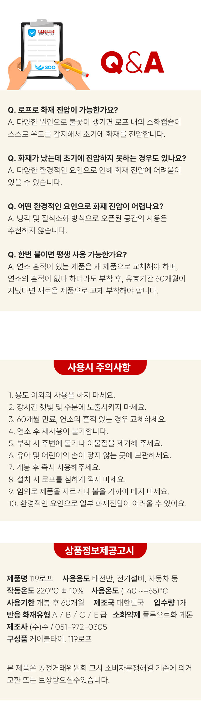 4. 전기, 통신 장치 화재 발생 시, 소화 캡슐이 반응하여 초기 화재 진압 5. 모바일은 구매버튼 누를 시, 다양한 용량별 구매 가능